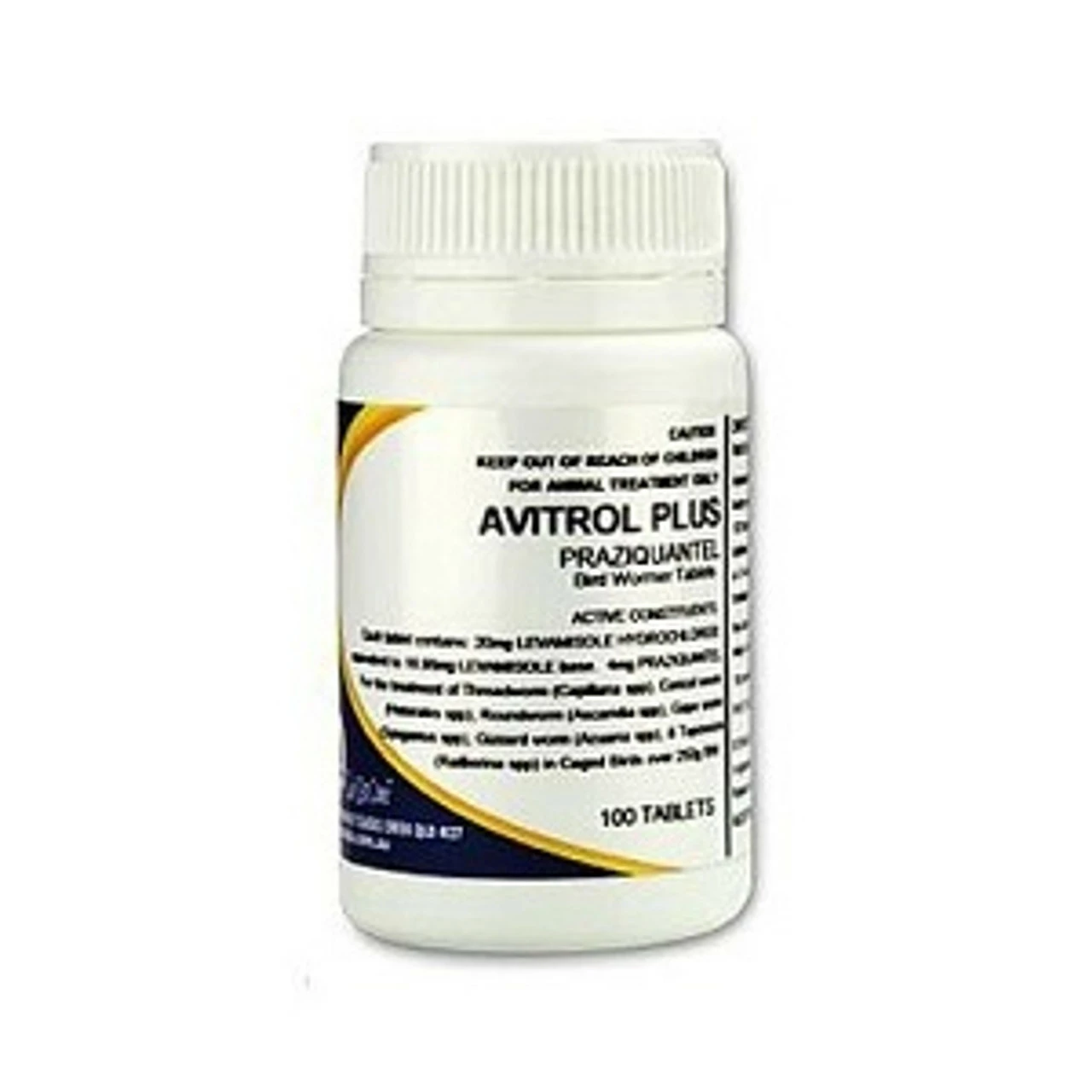 A convenient and broad spectrum bird wormer which controls thread, caecal, round, gape, gizzard and important tape worms in caged birds. Avitrol Plus syrup can be added to the drinking water, or dosed directly to the bird’s beak. Avitrol tablets provide a secure method of dosing individual birds. Available in 100 tablets