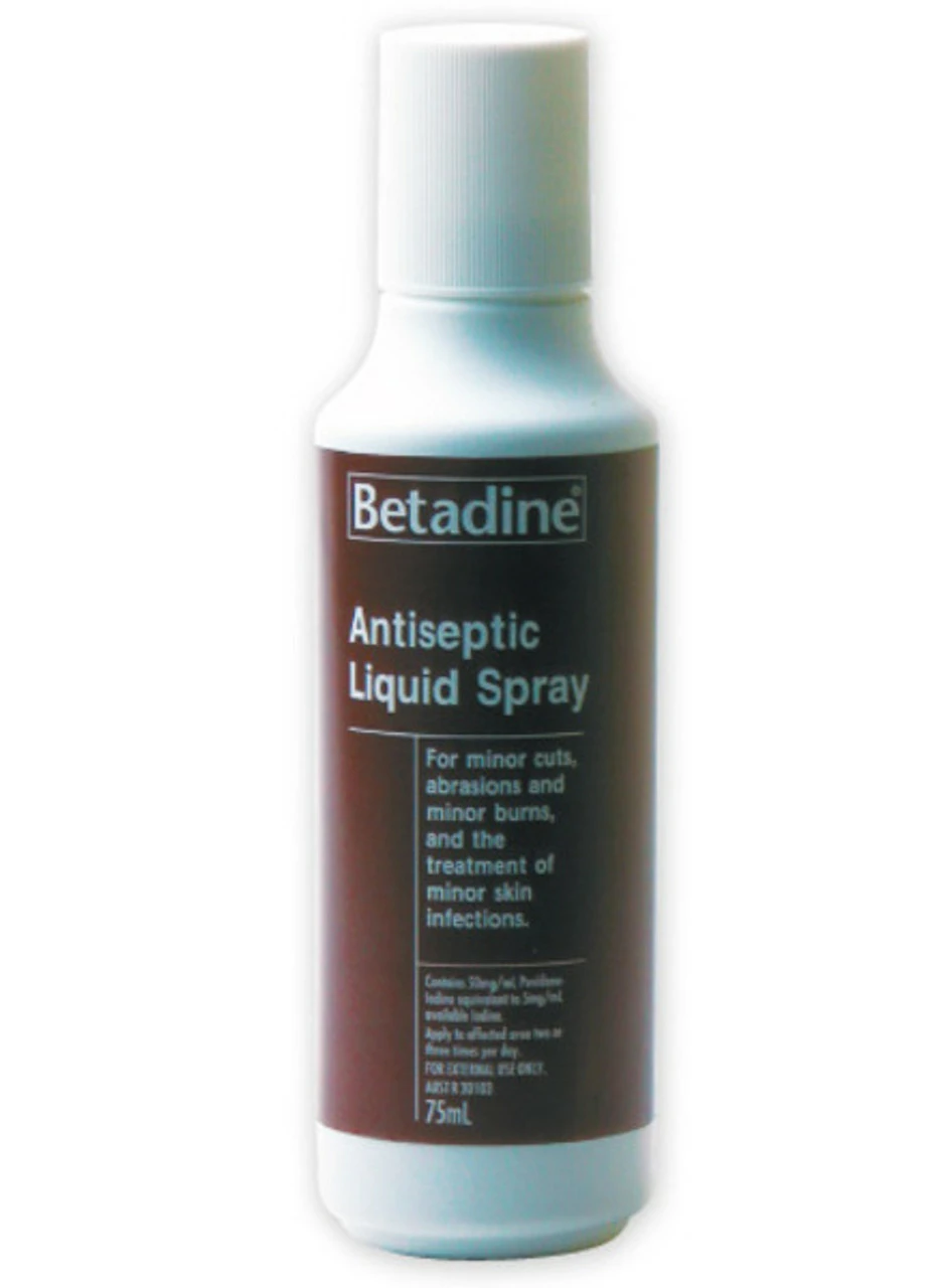 Betadine Antiseptic Liquid Spray is recommended for the treatment of common skin infections, as well as preventing infection in minor burns, cuts and abrasions. It is a bacterial, sporicidal, fungicidal and virucidal antiseptic.