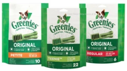Greenies® removes plaque and tartar – even heavy deposits, reduces gingivitis, freshens breath and improves your dogs overall oral health by helping to deter dental disease. When you begin feeding Greenies®, most pet owners notice an improvement in their dogs teeth and breath in less than two weeks. For optimum dental health, one Greenies® fed daily is recommended but can be given up to twice daily.
