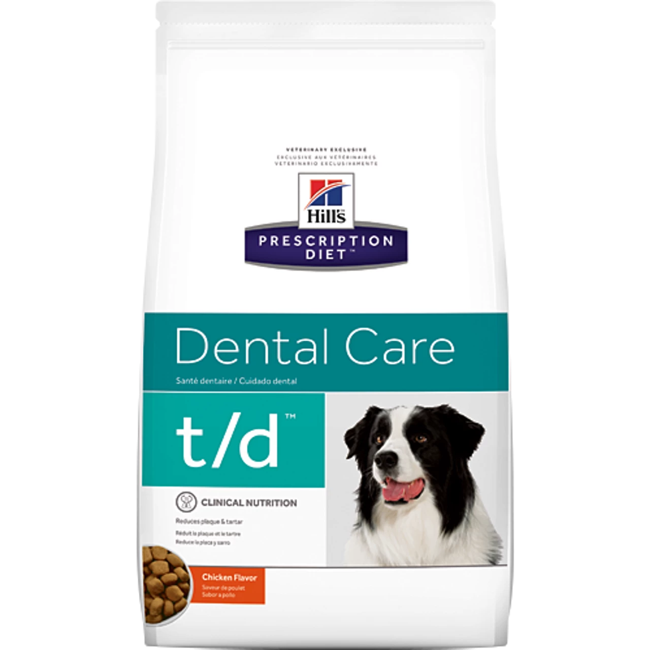 Hill’s nutritionists & veterinarians developed Prescription Diet™ t/d™ clinical nutrition especially formulated to support your dogs dental health. In fact, t/d™ is clinically proven nutrition to reduce plaque, stain, & tartar buildup.