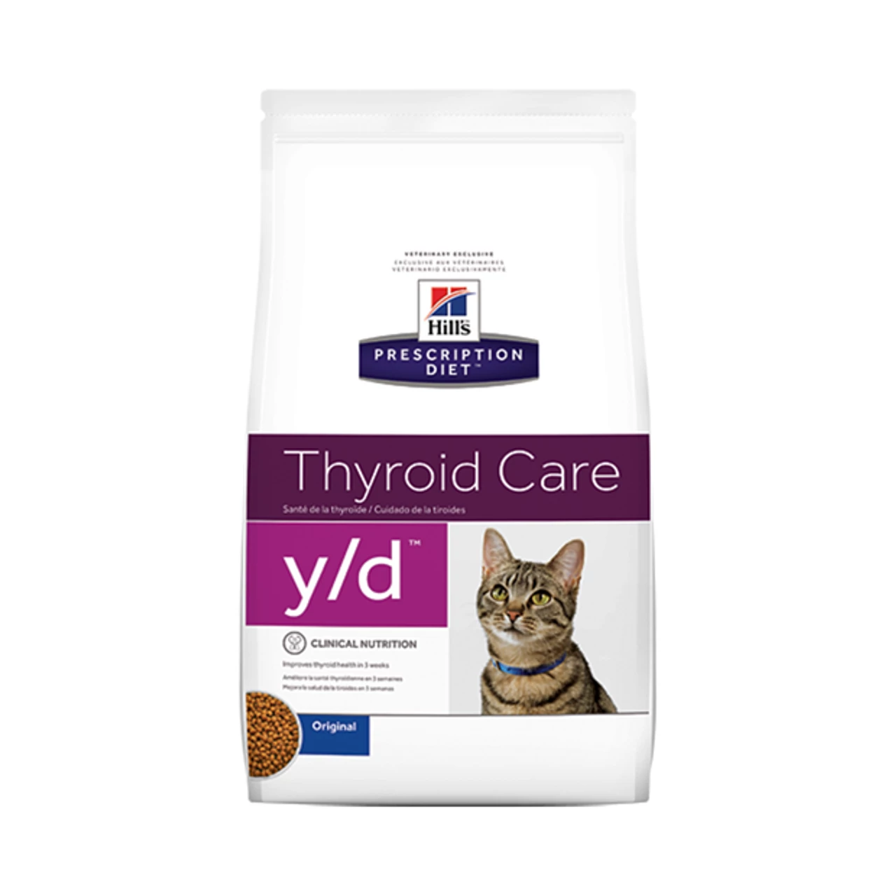 - IMPORTANT: Because iodine intake from other food sources — treats, another cats food, etc. — can compromise the effectiveness of low-iodine nutrition, its critical that you follow your veterinarians feeding instructions carefully and feed only y/d™.
