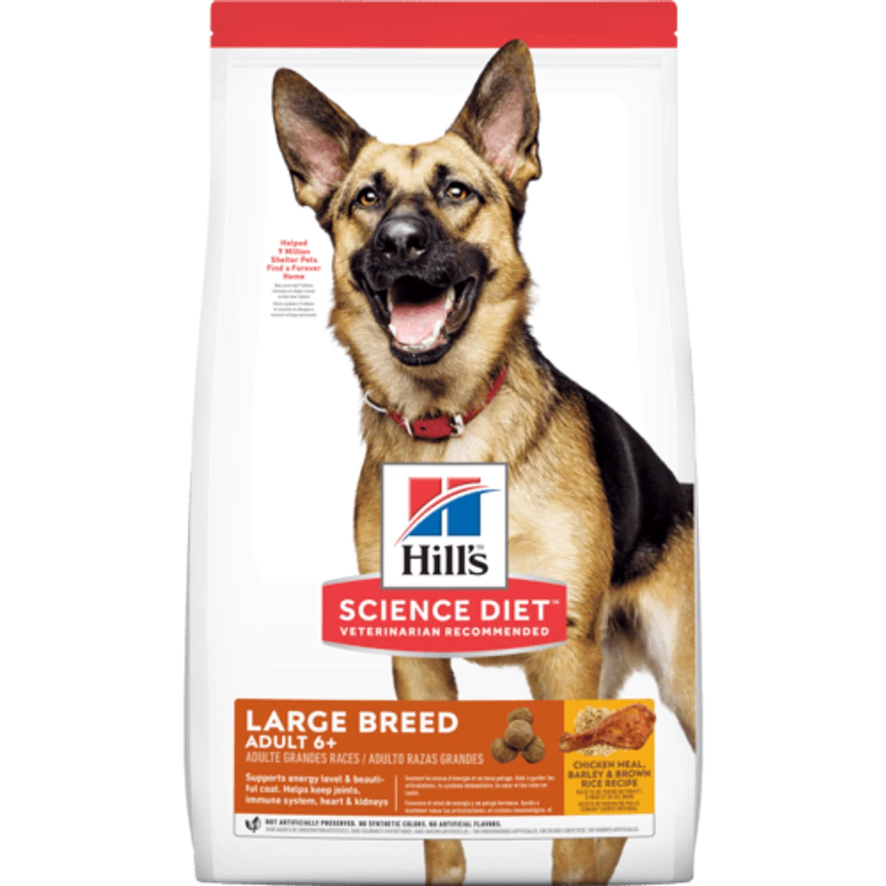 Hill’s Science Diet Large Breed Adult 6+ dry dog food is formulated for specific ageing needs of large breed dogs. Provides easy-to-digest nutrition with a synergistic blend of ingredients to help support energy & activity level.