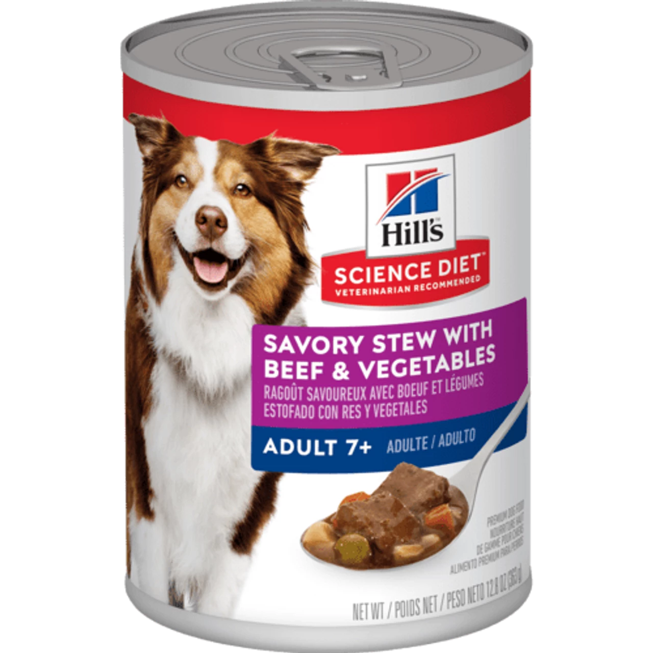 Hill’s Science Diet Adult 7+ Savory Stew with Beef & Vegetables dog food combines delicious ingredients with precise nutrition to support older dogs in energy and activity level.