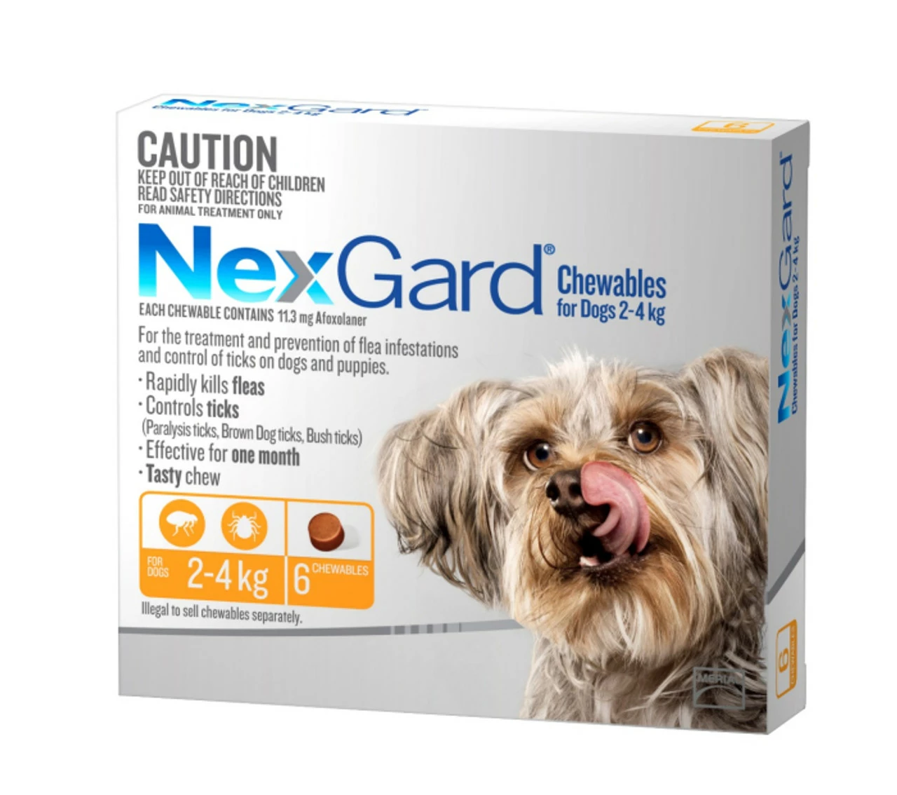 NEXGARD kills adult fleas and is indicated for the treatment and prevention of flea infestations (Ctenocephalides felis), and the treatment and control of paralysis tick infestations in dogs and puppies 8 weeks of age and older, weighing 2kg of body weight or greater, for one month.