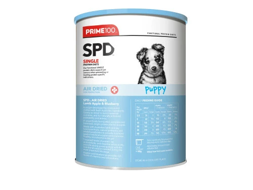 The Prime100 Single Protein Diet (SPD) Air Dried range is delicately crafted to achieve the highest quality in complete, balanced, nutritious dog food. This product comes vet recommended and suits dogs of all ages, breeds and sizes. Full of Pre and probiotics, omega 3 and 6 oils, Clucosamine, Chondroitin, DHA, and free from all GMO and Gluten products, it is the final word in pet nutrition!